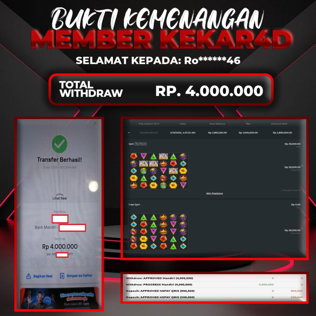 Setiap hari, banyak pemain meraih kemenangan besar di KEKAR4D. Berikut salah satu bukti kemenangan terbaru: