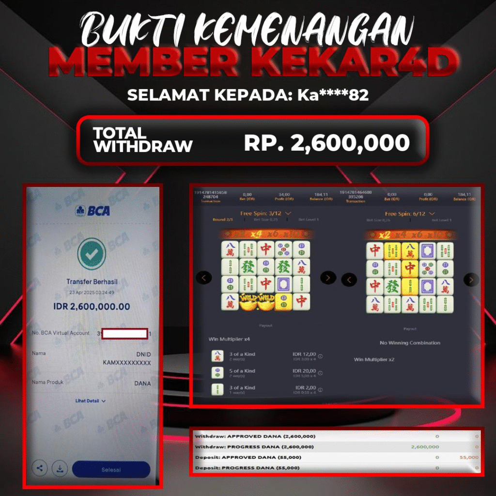 Bukti pembayaran ini sah dan dapat dipertanggungjawabkan. Hati-hati terhadap pihak yang mengatasnamakan KEKAR4D untuk melakukan penipuan. Pastikan Anda hanya bermain di situs resmi kami untuk keamanan transaksi dan pengalaman bermain yang adil dan pastinya sangat menyenangkan untuk dimainkan terus menerus hingga memenangkan Jackpot Besar.